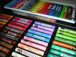 オイルパステルを塗り重ね指で馴染ませて描きます。